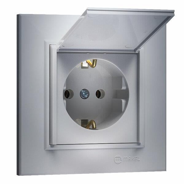 Makel Karea Kapaklı Topraklı Priz Modül + Kapak Gümüş (MAKEL.57065029)